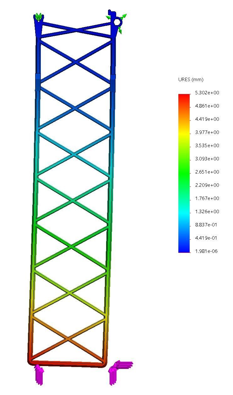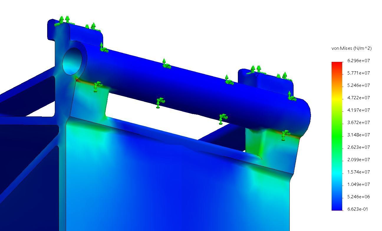 Tijdens deze simulatie worden er zorgvuldig krachten op het onderdeel toegepast, wat leidt tot de ontwikkeling van inwendige spanningen binnen het materiaal. Deze gedetailleerde simulatie maakt het mogelijk om te visualiseren waar inwendige spanningen zich ophopen, wat essentieel is voor het identificeren van mogelijke zwakke plekken in het ontwerp. Bovendien geven de resultaten van de simulatie niet alleen inzicht in de inwendige spanningen, maar ook in de verplaatsing of doorbuiging van het onderdeel. Dit aspect is van cruciaal belang, vooral wanneer onderdelen zich in de praktijk kunnen vervormen of aanpassen aan externe belastingen. Door deze analyses kunnen ingenieurs vaststellen of de ontwerpen voldoen aan de maximale verplaatsingseisen, waardoor de veiligheid en functionaliteit van de onderdelen gewaarborgd blijven in hun uiteindelijke toepassingen.