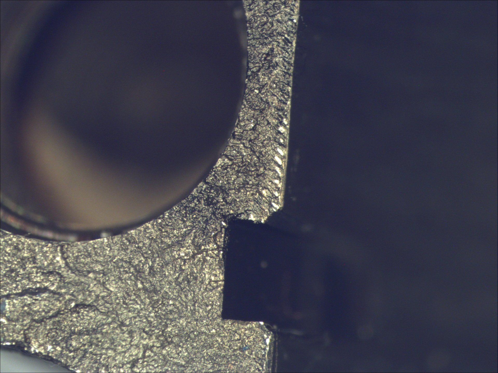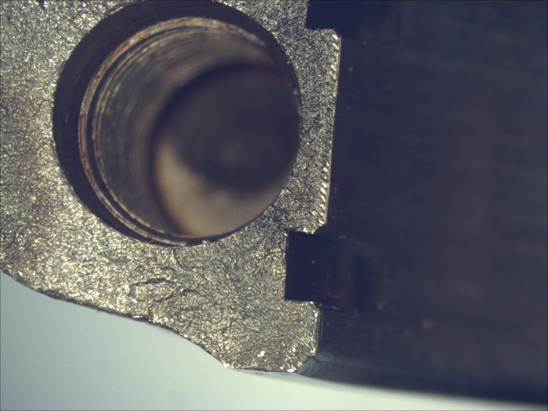 Hierboven ziet u een onderdeel dat is afgebroken, wat eigenlijk niet zou mogen gebeuren. Vreemd is ook dat het schroefdraad links volledig intact is. Na microscopisch onderzoek blijkt dat het onderdeel is belast in een richting waarvoor het niet ontworpen is. In dit geval is het niet nadelig dat het gebroken is, te voorkoming van meer schade.